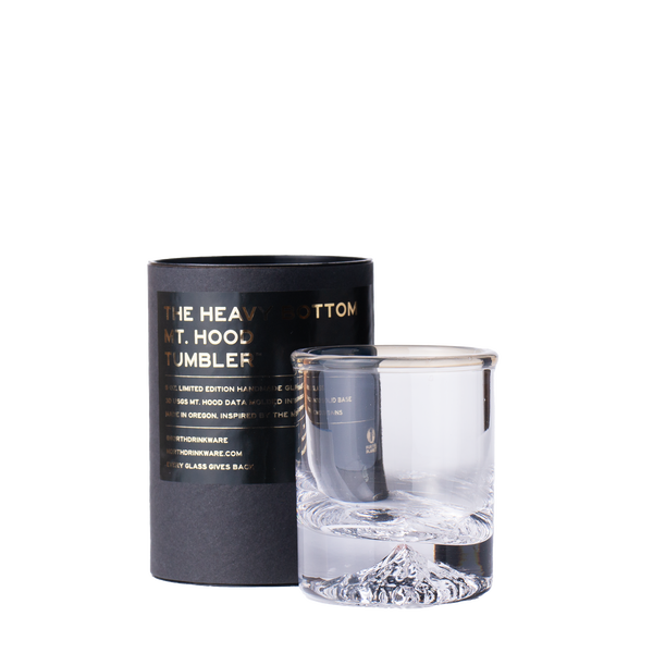 The Heavy Bottom Tumbler provide an unobstructed view of the mountain, built for those who also want a little more weight to their glass. Our standard Tumbler glass weighs in at about 1/4 lb, this very limited edition Tumbler weighs in at nearly 1 lb.